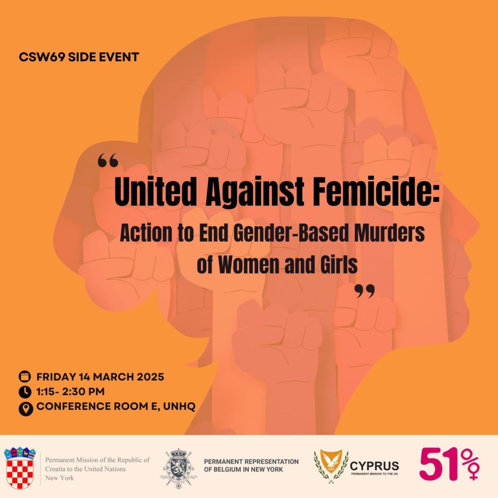 Ženska mreža Hrvatske sudjeluje na 69. sjednici UN Komisije o statusu žena / peking +30. U petak se održava zajednički događaj – side event “Zajedno protiv femicida: Akcija za okončanje rodno utemeljenog nasilja nad ženama i djevojčicama” koji organiziraju stalne misije Hrvatske, Belgije i Cipra i Ženska mreža Hrvatske.